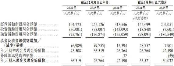 于2022年、2023年、2024年及截至2024年及2025年6月30日止六个月,遇见小面录得的经营活动所得现金净额分别为人民币104.8百万元、人民币245.1百万元、人民币313.5百万元、人民币145.7百万元及人民币202.1百万元。